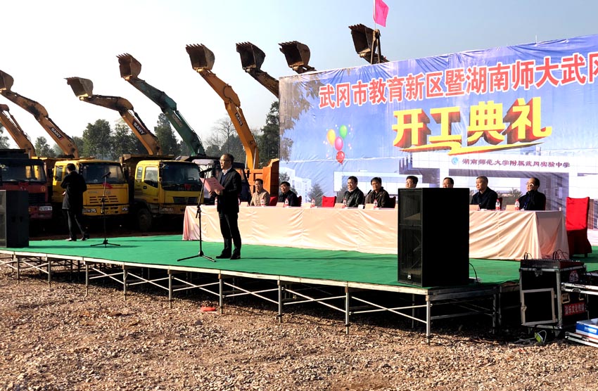 2017年12月19日上午,湖南湘江工程建設(shè)有限公司承建的湖南省重點工程、武岡市教育新區(qū)暨湖南師大武岡附中校區(qū)建設(shè)工程項目舉行開工典禮。湖南師大副校長王善平,邵陽市委常委、武岡市委書記侯文、湖南省有色地質(zhì)勘查局總工程師曹幼元、項目工程建設(shè)指揮部指揮長夏建新、湖南湘江工程建設(shè)有限公司董事長張賢軍等領(lǐng)導(dǎo)共同為項目奠基。